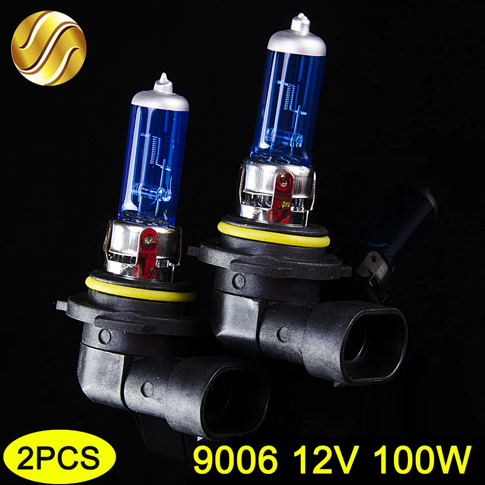 Hippcron 9006 HB4 12V 100W Halogen Lamp 2 PCS(1 Pair) Car Headlight Bulb Super White 5000K Quartz Glass Dark Blue