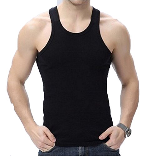 Hippolo - canotta aderente da uomo 100% cotone - canotta atletica da palestra, colore bianco Black L