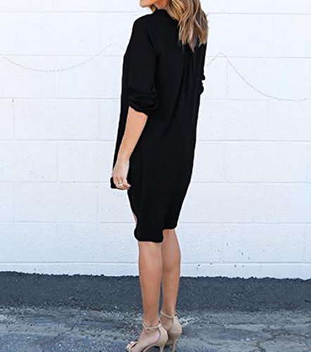 Hippolo Maglietta da Donna a Maniche Lunghe con Collo a V Vestito Lungo Top Sciolto Casual Vestito Black Large