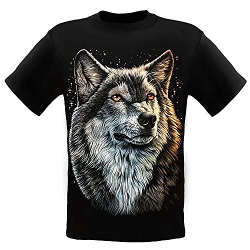 HIPPOO,Caballo,MA-635,Maglietta Nottilucenta Lupo,Cotone,Brilla al Buio Nottilucente,M