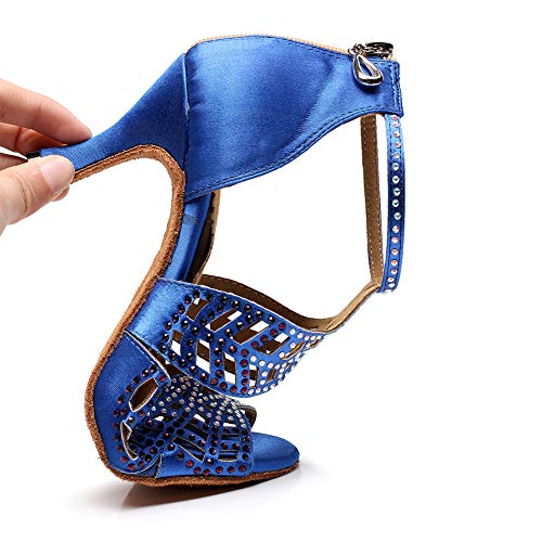HIPPOSEUS Scarpe da Ballo Donna con Strass Latino con Strass,Modello7014,Blu, 35 EU