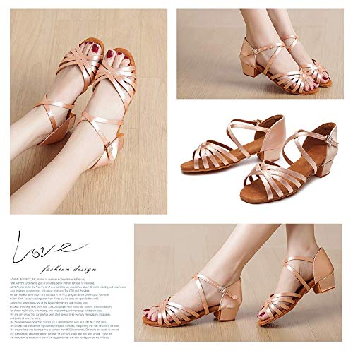 HIPPOSEUS Scarpe da Ballo Latino Rosa Pallido per Ragazze e Donne Scarpe da Ballo per Salsa da Sala da Ballo con Tacco Basso 3 cm Modello 202ZS, EU 38