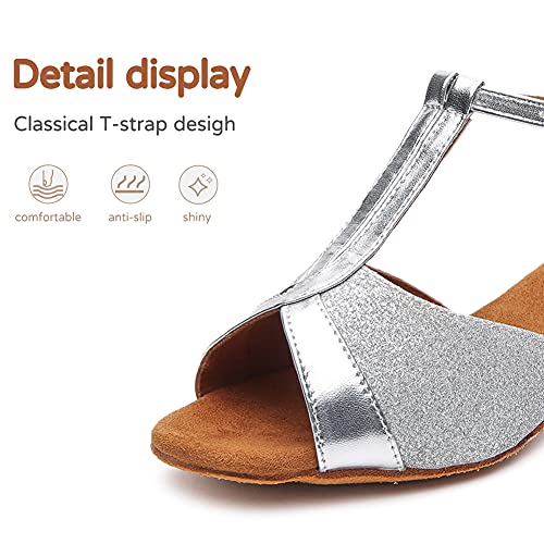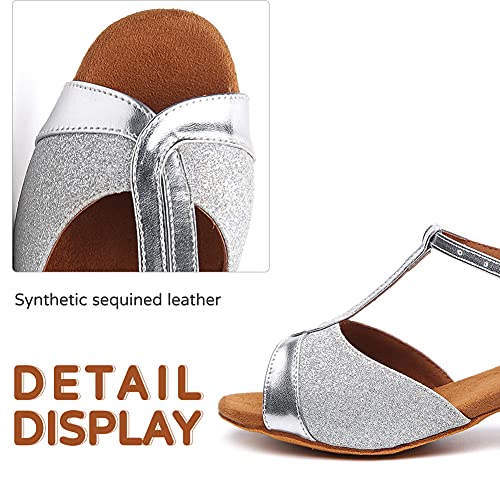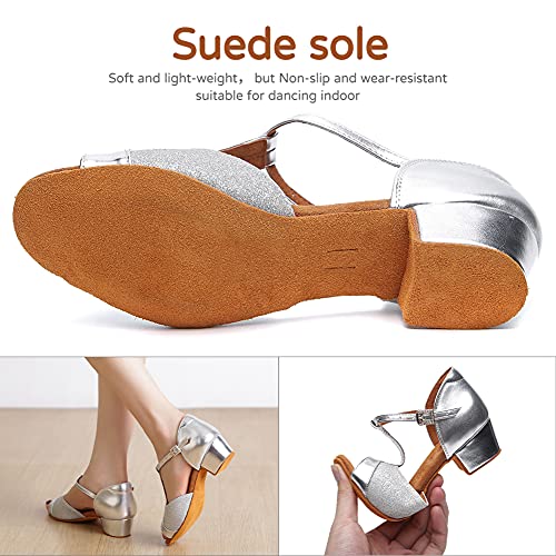 HIPPOSEUS Scarpe da Ballo Latino per Ragazze Scarpe da Ballo Salsa da Sala con Tacco Basso Lucido a Punta Aperta, Modello 305