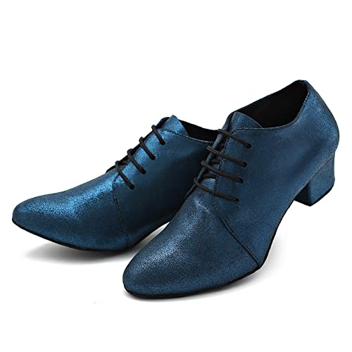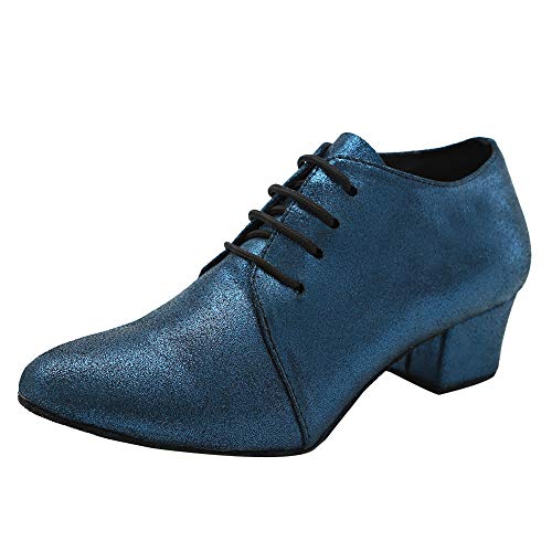 HIPPOSEUS Scarpe da Ballo Standard Stringate per Donne Blu Tango Salsa Latino Scarpe da Danza Pratica Punta Chiusa Tacco 4.5 cm,Modello L229,41 EU