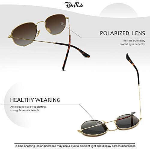 RICH MODE Hipster Small Polygon Donna Uomo Occhiali da sole Cornice in metallo delicato - Lente marrone sfumato color oro (naselli retrò)
