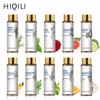HIQILI Orange Tea Tree Essential Oils 10ML Diffuser Aroma Oil Eucalyptus Vanilla Bergamot Lemongrass Rosemary Chamomile Oil