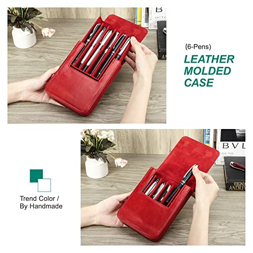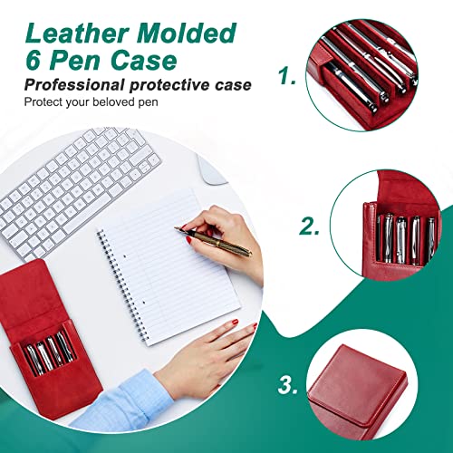 Hiram Custodia per penna in pelle per penna da 6 pezzi Portapenne portatile in pelle conciata al vegetale con chiusura magnetica nascosta a scatto e design portapenne (Rosso)