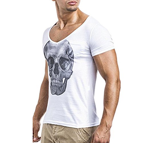 Hiroo Uomo Camicia T-Shirt Maglia a Manica Corta/T Shirt Uomo Manica Corta/Maglione da Uomo/Scheletro Stampa Slim Fit Manica Girocollo/T-Shirt Girocollo/Estate in Alto (M, Bianco)