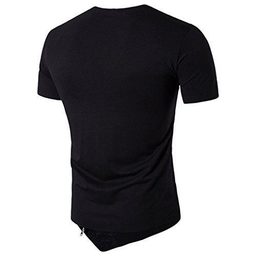 Hiroo T-Shirt da Uomo Irregolare Maglietta A Maniche Corte Uomo in Cotone Camicetta Slim Fit T-Shirt Girocollo Estate in Alto Palestra T-Shirt Cotone Slim Fitness Lo Sport Casual (M, Nero)