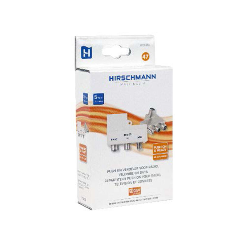 Negozio distributore Hirschmann Rtd03Applicazione: per il collegamento di FM, TV e dati a una presa di porta unidirezionaleFrequenza: 5 - 2000 MHzCon cappuccio protettivo2 GHz prontoZiggo adattoContenuto della confezione: 1x adattatore push-on CATV