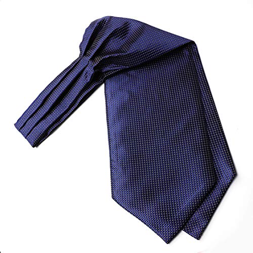 HISDERN Ascot blu navy bianco Uomo a Pois Fazzoletto Stripe Cravatta da Matrimonio Elegante Foulard Business Partito Classico Ascots Set