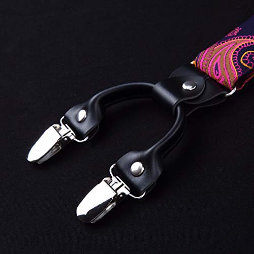 HISDERN Bretelle da uomo Paisley Clip on Pre Butterfly Papillon 6 Clips fazzoletto Eleganti Regolabile di e Forma a Y Elastica set bretelle