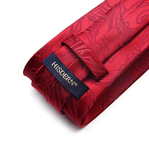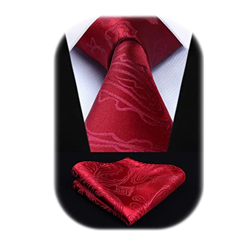 HISDERN Cravatta Uomo e Fazzoletto Elegante Paisley Cravatta Set di Rosso Cravatte Classiche per il Matrimonio Festa Lavoro Laurea