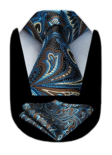 HISDERN Cravatta Paisley per uomo Fazzoletto tessuto classico floreale maschile cravatta e tasca quadrata Set