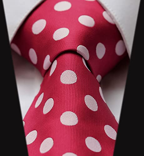 HISDERN Cravatta Rosso Uomo Elegante a Pois Cravatte e Fazzoletto da Matrimonio Set Cravatta e Pochette da Business