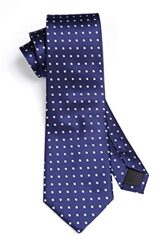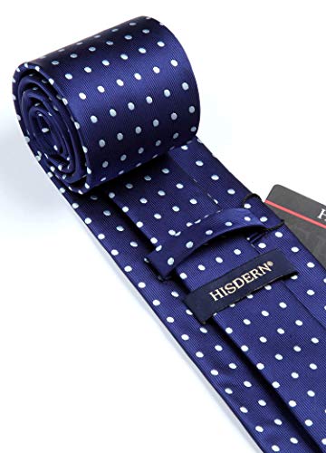 HISDERN Set di fazzoletti da uomo e fazzoletti da taschino con cravatta a pois extra lunghi (blu scuro)