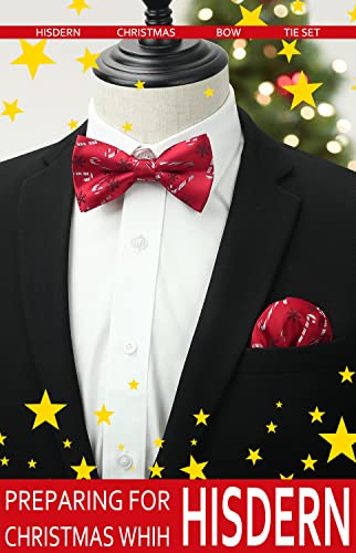 HISDERN Set da fazzoletto da taschino da uomo con papillon natalizio in tessuto da regalo