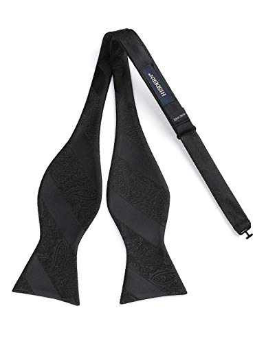 HISDERN Papillon da Uomo Floreale Paisley e Tasca Quadrata, Cravatta a Farfalla e Set di Accessori per Fazzoletti per Feste di Matrimonio (Nero_2)