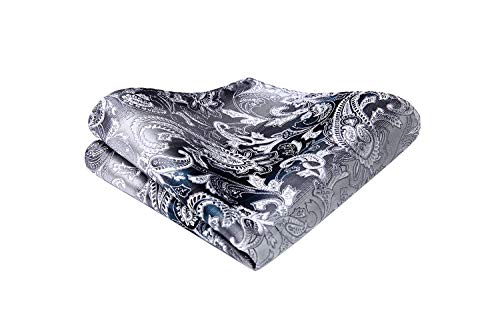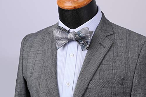 HISDERN Papillon da Uomo Floreale Paisley e Tasca Quadrata, Cravatta a Farfalla e Set di Accessori per Fazzoletti per Feste di Matrimonio (Grigio)