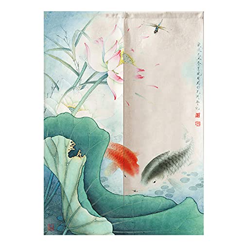 Hiseng Noren Tenda Giapponese della Porta Tappezzeria, Divisorio Stile Curtain Tapestry Cucina Ristorante Negozio Camera Doorway Corridoio Decorazione (Cyprinus carpio,80x120cm)