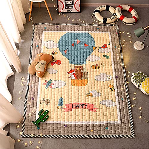 Hiseng Tappeto da Gioco per Bambini, Copertina per Gattonare in Cotone, Bebè Strisciante Tappetino Lavabile Grande Antiscivolo Tappeti, per Camerette Sala Giochi (mongolfiera,145x195cm)