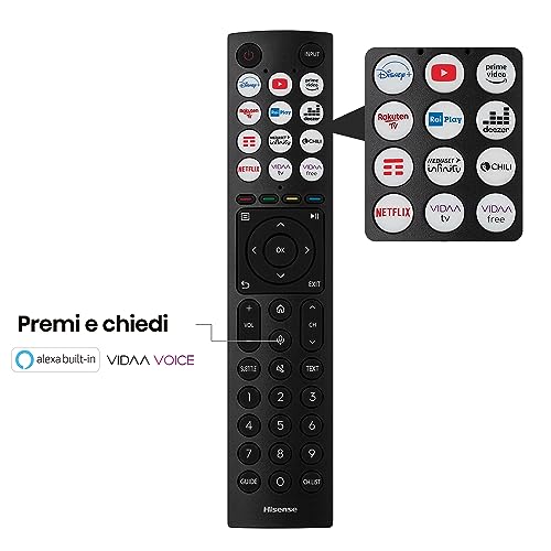 Smart TV VIDAA 6.0 (app: Netflix, Youtube, Prime Video, DAZN, Rakuten TV, Rai Play, Chili, TIM Vision, Infinity) con controlli vocali Alexa