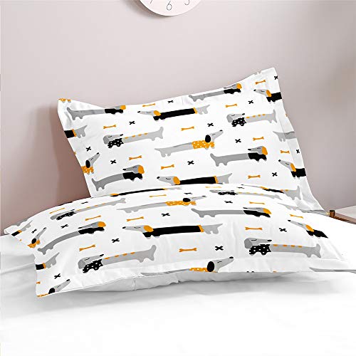 Hiser Set di Biancheria da Letto de 3 Pezzi - Set Copripiumino per Letto Matrimoniale Singolo King in Microfibra - Federa e Copripiumini di 3D Animale Cane Stampa (Bassotto,140x200cm)