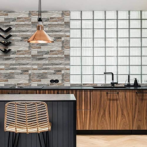 Hiser 20 Pezzi Similpelle 3D in Finta Pietra Stile Mattone Pellicole Adesive per Mobili e Pareti,Rotoli Carta Adesiva Altissima Risoluzione con Varie Misure,Wrapping Piastrelle Cucine (LA019,20cm)