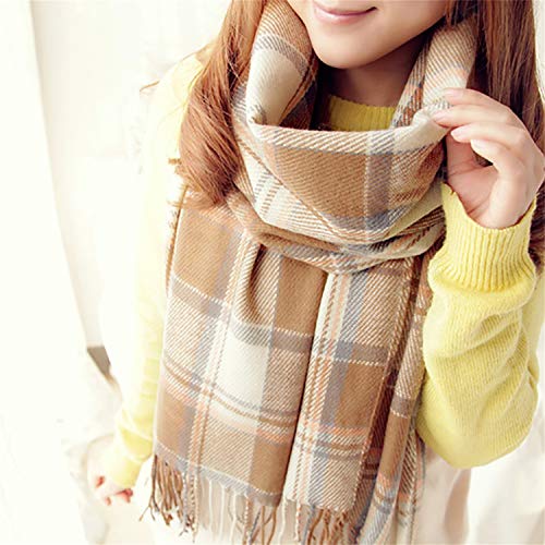 Hishiny Tartan grande sciarpa scialle moda donna Stola Plaid nappe Scarf Sciarpa Donna Invernale Tartan Accogliente Caldo Scialle Sciarpa Donna Inverno Stola Pashmina Sciarpa (Beige)