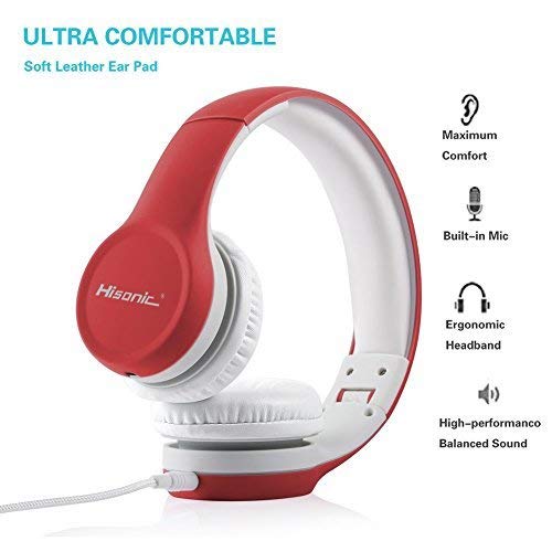 Hisonic Cuffie per bambini, Volume limitato con microfono cuffie pieghevoli Condividi il collegamento per Ragazze bambini (rosso)