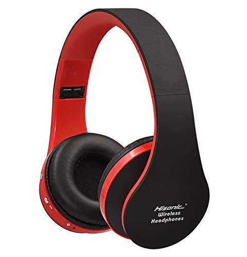 Hisonic Wireless Cuffie Bluetooth, Auricolari Bluetooth Pieghevole con Microfono Compatibile for iphone, Android, PC, TV e qualsiasi dispositivo Bluetooth (Nero+Rosso)