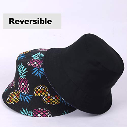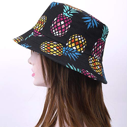HISSHE Donne Frutta Stampa Reversibile Cappelli a Secchiello Uomini Sun Fisherman Cappello da Esterno (Ananas Multicolore,Taglia Unica)