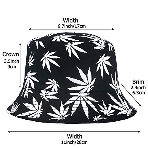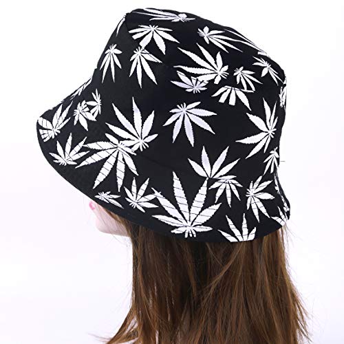 HISSHE Donne Frutta Stampa Reversibile Cappelli a Secchiello Uomini Sun Fisherman Cappello da Esterno (Foglia Nero,Taglia Unica)