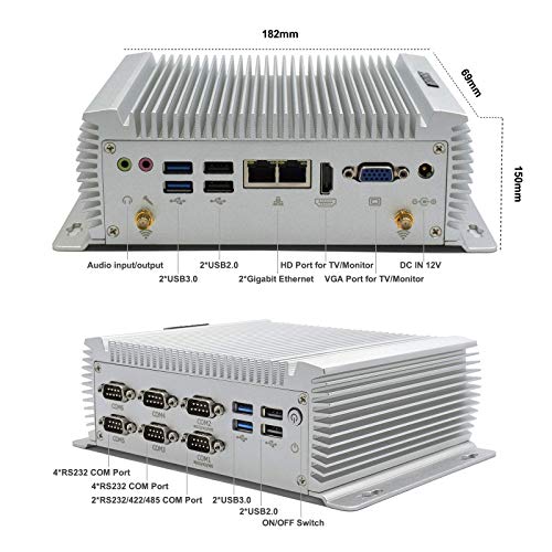 HISTTON Mini PC Fanless, PC Industriale Windows 10 Pro, Core i7-4500U, 8 GB di RAM 128 GB SSD, 4xCOM RS232, 2xCOM RS485, 2 * LAN, 1 * HDMI, 1 * VGA, Dual Wifi, BT 4.0, Mini PC desktop senza ventola