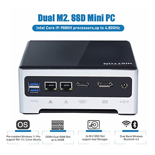 HISTTON Mini PC Windows 11 Pro, Mini Desktop PC DDR4 Intel Core i9-9880H UHD-Grafik 630, Mini Desktop Computer, 32 GB DDR4 / 512 GB SSD, Gigabit-Ethernet/HDMI+DP/4K/M.2 Wi-Fi/BT4.2