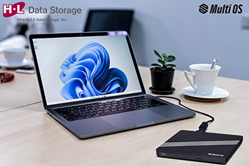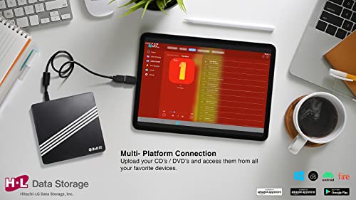 Hitachi-LG Lettore DVD esterno M1 - masterizzatore DVD portatile multi-OS USB 3.0 tipo C ultra sottile compatibile con smartphone/tablet/TV/dispositivi Fire con app UDLink e supporto Fire OS