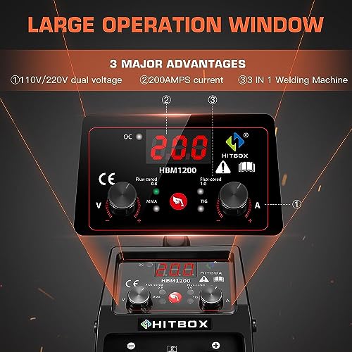 【Eccellenti Caratteristiche di Saldatura】: il pannello della saldatrice mig HITBOX HBM1200 è facile da usare. Questa saldatrice ha impostazioni di potenza e velocità di avanzamento del filo regolabile, la corrente di lavoro 20-120 A è adatta per la saldatura di lamiere da 0,8-4,0 mm.