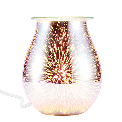 HITECHLIFE Lampada aromatica in Vetro 3D Effetto fuochi dartificio-Bruciatore a NAFTA Elettrico-Lampada aromatica per Cera da fondere- Fragranza Luce Notturna Aroma Decorativo per Ufficio Domestico