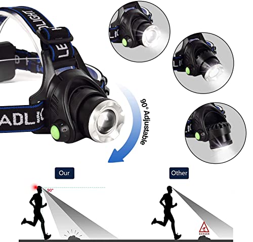 HitJoy Torcia Frontale, Lampade da Testa LED USB Ricaricabile Impermeabile Zoomable con 3 Modalità di Luce per Campeggio Running Pesca Trekking (Nero, Batterie AAA rimovibili)