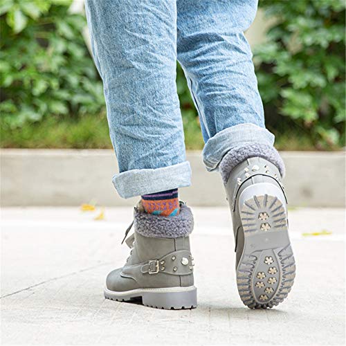 Hitmars Stivali Invernali Donna Scarpe da Neve Stringati Pelliccia Caldo Snow Boots Caviglia Stivaletti Piatto Outdoor Stivali Grigio 37
