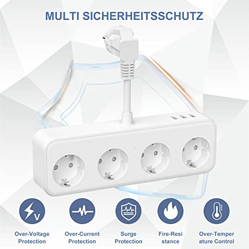 Presa multipla 7 in 1: la ciabatta elettrica HITRENDS con USB dispone di 4 porte AC (2400 W/10 A) e 3 porte USB. Ogni porta USB totale 2,4 A 5 V. Ora è possibile caricare 7 dispositivi contemporaneamente, ad esempio telefono, laptop, ecc., adatto per l'uso domestico e in ufficio.