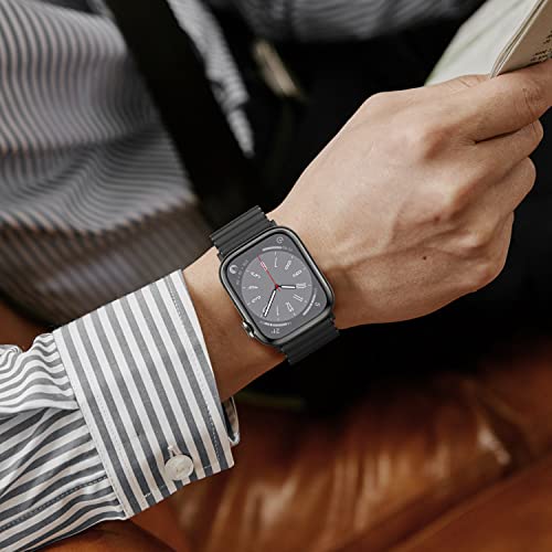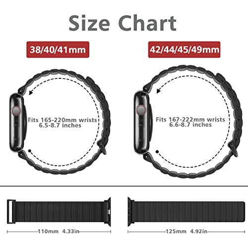 HITZEE Cinturini Compatibile con Cinturino Apple Watch 49mm 45mm 44mm 42mm, Cinturino con Pelle Silicone Magnetico Loop Band Compatibile per Apple Watch Ultra Serie 8 7 SE 6 5 4 3 2 1, Nero