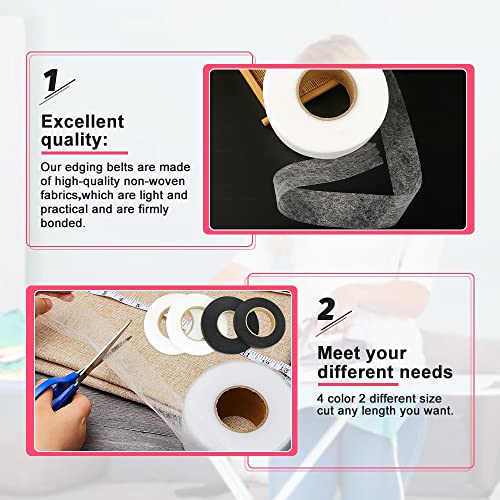 【4 Rotoli, Bianco e Nero】 Riceverai 4 rotoli di nastri per orli: set di 4 pezzi, totale 256 m/280 iarde, 2 rotoli neri e 2 rotoli bianchi, ti aiutano a usarlo su vestiti con diverse tonalità di colore. 264 metri, sufficienti per i suoi usi.