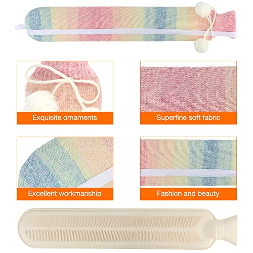 【Sicuro e durevole】: la borsa dell'acqua calda lunga è realizzata in gomma naturale, monitorata e testata secondo gli standard CR, sicura e atossica, non facile da deformare, buon effetto di isolamento termico e la bocca della bottiglia ha una copertura a prova di perdite, quindi non dovrai preoccuparti di scottarti con acqua calda.