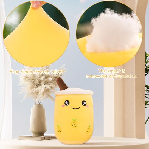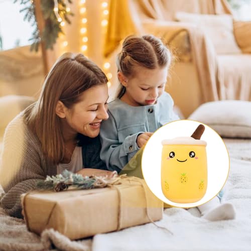 HIULLEN Bubble Tea Peluche, 25cm Morbido Peluche Boba Tè, Bubble Pearl Milk Tea Cuddly Pillow, Milk Tea Cup Cuscino Peluche Regalo di Compleanno per Bambini Adulti(giallo)