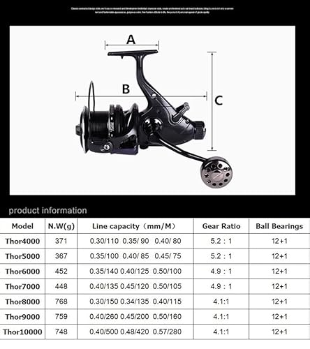HiUmi Mulinelli da pesca alla carpa 8000 9000 10000 Esca Runner Big Free Runner Doppio Freno Alimentatore 12+1 Cuscinetto a sfera Mulinello da pesca Spinning (THOR8000)
