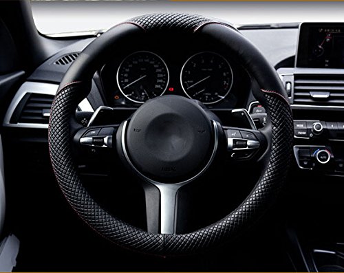 Hivel Coprivolante Auto Lusso Universale Antiscivolo Pelle Microfibra Weave Design Traspirante Copri Volante Car Steering Wheel Cover 38cm - Nero