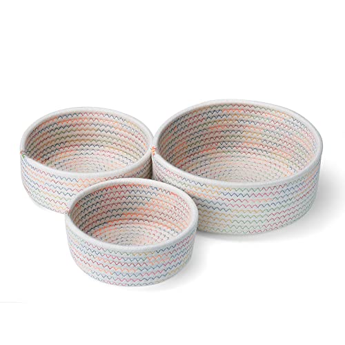 Hivexagon Cesto portaoggetti - Cestini intrecciati in cotone, 3 pezzi impilabili per organizzazione, vaschette rotonde per frutta, gioielli, chiavi, accessori cucito