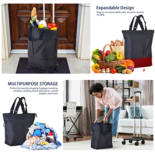Hivexagon Trolley per la spesa Carrello Della Spesa,Borsa Della Spesa Espandibile Rimovibile con 5 Rotelle Carrello Pieghevole per i Viaggi Della Spesa (Nero)