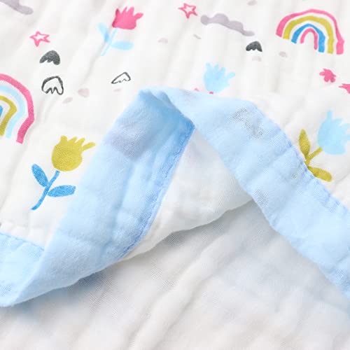 Hivia Coperta di Mussola Neonato,110 x 110 CM Copertina in Cotone 6 Strati di Morbido e Confortevole Swaddle Blanket per Bambino Unisex Mussola Asciugamano Coperta per Culla,Passeggino (Fiori Blu)